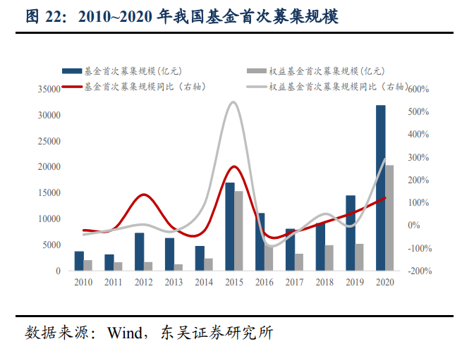 2015年,我國(guó)基金首次募集規(guī)模較2014年暴增,是2014年3倍多。可那一年透支了居民幾年的基金購(gòu)買力,而牛市后的狂跌也讓基民幾年后才解套,直到2020年才重拾對(duì)基金的信念。