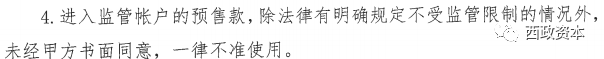 前面有提到,如果開發貸無法置換前融資金,那前融資金就得繼續等到項目預售且有足夠的回款后才能退出,其中預售的回款全部進入銷售監管賬戶后如何出款并歸還前融資金和開發貸就成為了問題的關鍵。一般來說,銀行等資金機構大都會要求開發商按照銷售進度歸集還本付息的資金,具體比如銷售提留、每月/每季度賬戶內新增資金的xx%扣劃還款保證金或直接用于還款等;或者也有要求開發商按照銷售面積的完成比例確定還本付息的安排,比如銷售達到一定面積則本金歸還到百分之幾之類的。因銷售監管賬戶的出賬屬于地方政府(一般是房管局)的常規監管事項,因此資金機構的扣款或劃款還得按照地方監管的政策來操作。