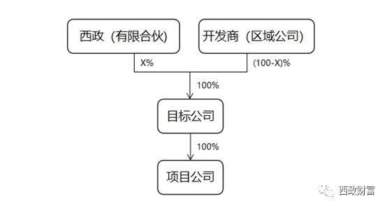 當前的土地前融業務中,因很多國企類機構都可以接受中間級或劣后級的出資份額,因此我們目前的產品設計上一般都會根據開發商的自有資金調配情況進行夾層資金的引入。以我們當前的土地款配資業務為例,我們西政(GP)發起設立有限合伙企業后安排關聯方或其他第三方認購優先級LP份額,同時引入國企類機構認購中間級份額,劣后級份額則直接由開發商認購,其中開發商實際出資部分(也即劣后級份額)一般只有10%左右,也即剩下的原本要出資的20%的部分可繼續用于其他兩個地塊的競拍,由此可以較好地放大杠桿。