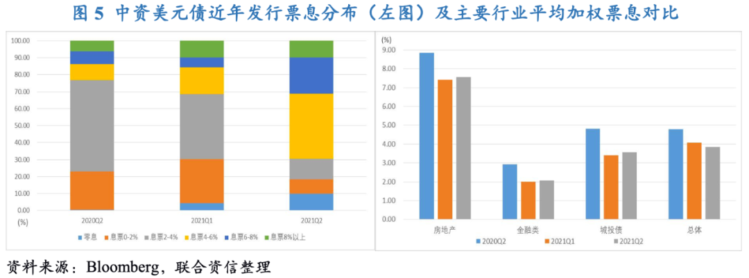 受益于美債收益率的下行,中資美元債發(fā)行成本繼續(xù)觸及歷史低位,但金融類和城投行業(yè)平均票息均小幅上升