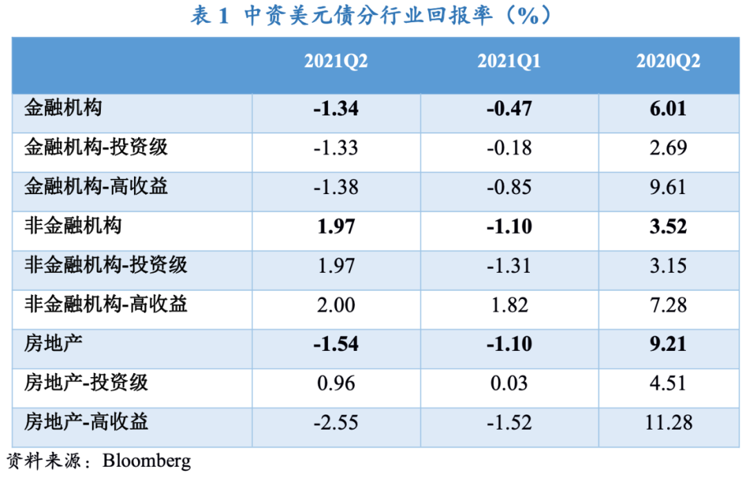 信用風(fēng)險事件繼續(xù)發(fā)酵,拖累中資美元債二級市場回報率繼續(xù)為負,受地產(chǎn)違約溢出效應(yīng)影響高收益?zhèn)貓舐世^續(xù)下跌,非金融機構(gòu)表現(xiàn)穩(wěn)定對投資級收益率起到提振作用