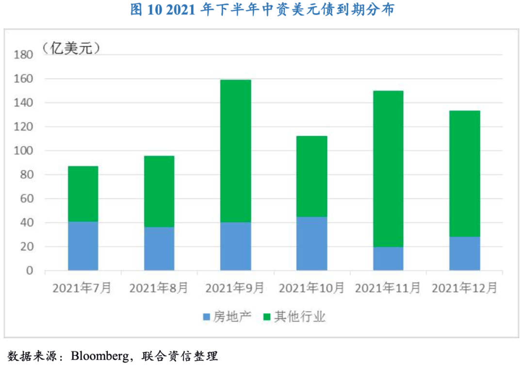 2021年下半年中資美元債到期壓力較大,尤其房地產(chǎn)企業(yè),在“三道紅線”壓力下房企面臨的違約風(fēng)險仍然較高