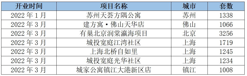 表3:2022年Q1部分新開業(yè)大型租賃社區(qū)項(xiàng)目匯總
