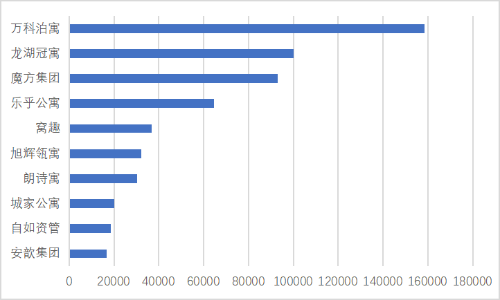 圖1:2022年Q1TOP10集中式長(zhǎng)租公寓運(yùn)營(yíng)企業(yè)累計(jì)在營(yíng)房間規(guī)模(單位:間)