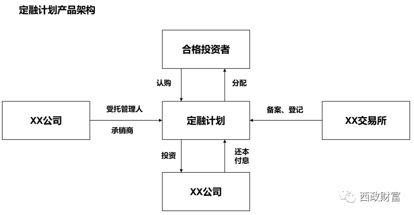 與摘掛牌收益權類產品相比,(1)定融類產品一般無明確的底層標的;(2)發行主體資質需比較優質,比如主體評級AA+以上,具體根據各交易所的要求確定;(3)要求進行場內交易,即資金走向為投資人——交易所開設的募集專戶——被投資標的;(4)通常可以對個人直接募集。基本架構如下: