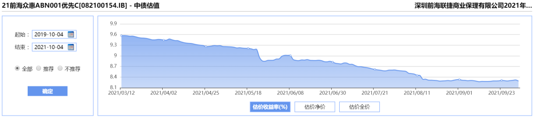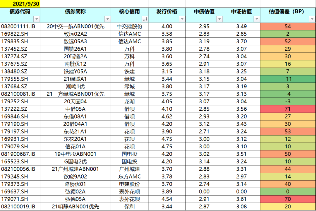 這種偏離狀態的相對程度并非一成不變的,以2021年9月30日的估值觀察,中證估值收益率就系統性的超越了中債估值收益率水平。其具體原因尚待深入討論考察。
