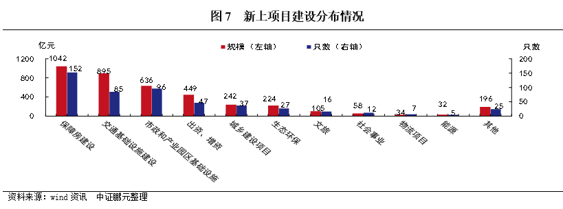從債券募資部分或全部用于項目建設的項目類型來看,主要有保障性安居工程、交通基礎設施、市政和產業園基礎設施、股權出資、城鄉一體化建設、生態環保、文旅、社會事業、物流、能源等,而以保障性安居工程和基礎設施建設項目居多,用于保障性安居工程和基礎設施建設項目的債券只數共計333只,占募資用于項目建設的債券只數之比達到了65.4%。其中保障性安居工程主要包括棚戶區改造、安置房建設、租賃房建設等,但老舊小區項目卻很少,基礎設施建設項目主要是交通基礎設施和市政及產業園基礎設施項目建設。因而,總的來看,城投債用于項目建設類型仍然以收益率偏低的公益性項目為主。另外,城投債用于股權出資和增資的債券也達到了47只,居于第四位,反映出城投公司擴大經營性收入來源、推進市場化轉型的意愿。