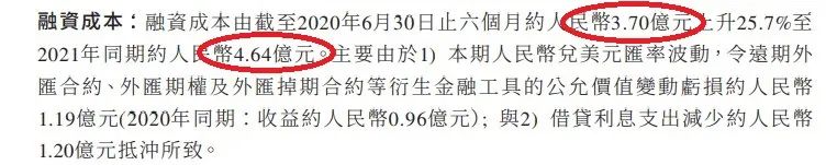 1) 本期人民幣兌美元匯率波動,令遠期外匯合約、外匯期權及外匯掉期合約等衍生金融工具的公允價值變動虧損約人民幣1.19億元(2020年同期:收益約人民幣0.96億元);