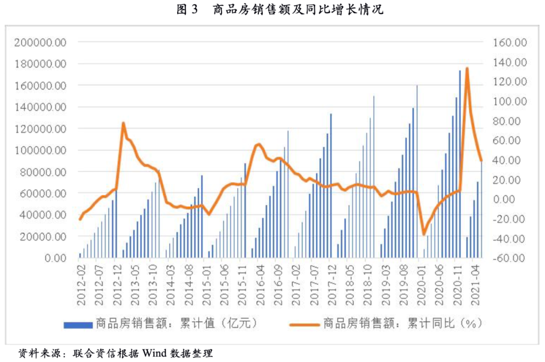 從銷售端看,2021年上半年房地產(chǎn)行業(yè)銷售熱度未減,房地產(chǎn)市場仍保持較快增長態(tài)勢。全國2021年1-6月實(shí)現(xiàn)商品房銷售額9.29萬億元,同比增長38.90%;較2019年同期增長31.45%。但房地產(chǎn)企業(yè)普遍受到銀行貸款集中度影響而導(dǎo)致回款速度放緩。此外7月以來多個熱點(diǎn)城市限購舉措加碼,預(yù)計后續(xù)銷售端壓力將逐步顯現(xiàn)。