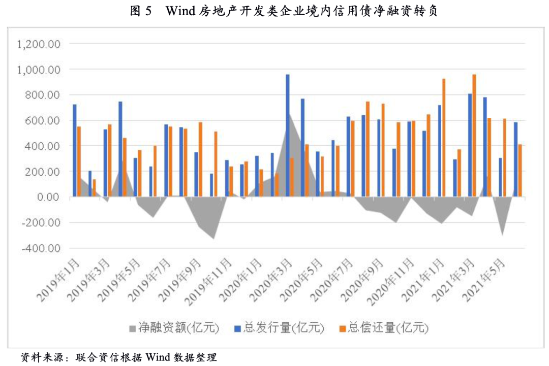 從融資端情況看,伴隨融資政策收緊以及大型地產(chǎn)商負(fù)面事件的沖擊,今年來市場風(fēng)險偏好下行,房地產(chǎn)企業(yè)融資持續(xù)偏緊。銀行信貸方面,截至2021年6月底房地產(chǎn)開發(fā)貸款余額123,000.00億元,同比增長2.80%,房地產(chǎn)開發(fā)貸余額增速延續(xù)下降態(tài)勢。債券融資方面,受到政策調(diào)控以及市場風(fēng)險偏好降低影響,自2020年下半年以來凈融資表現(xiàn)持續(xù)走弱,“三條紅線”以來凈融資整體表現(xiàn)為凈流出狀態(tài)。境外債方面,2020年以來整體發(fā)行規(guī)模有所下降。2021年上半年,受“三條紅線”等因素影響,整體發(fā)債速度延續(xù)下降態(tài)勢,凈融資規(guī)模一度轉(zhuǎn)為凈流出。信托融資方面,用益信托網(wǎng)數(shù)據(jù)顯示,上半年房地產(chǎn)集合信托成立規(guī)模2,987.84億元,連續(xù)兩個半年度回落,也是自2018年以來半年度成立規(guī)模的最低點(diǎn)。