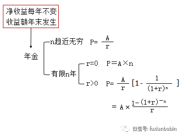 當收益永續,各因素不變時,其計算公式為:P=A/r