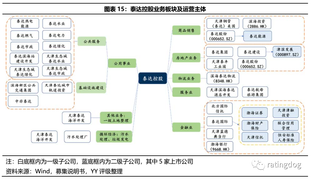 天保投控是天津保稅區主要的基建與國資運營平臺,由天津港保稅區國有資產管理局100%控股,目前公司業務主要集中在交通運輸、房地產開發和市政公用業務,并投入較大資金參與金融機構和投資企業。公司資產規模較大,但債務負擔重,市場爭議較大,考慮到其作為區域重要平臺,短期內有一定安全邊際。