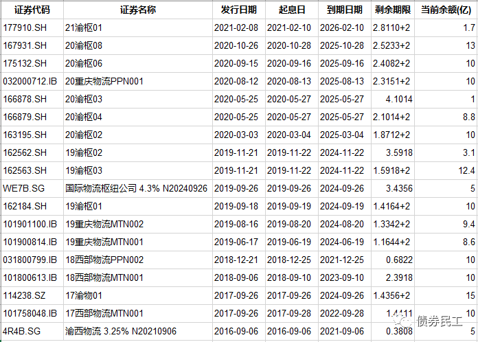 物流建設(shè)目前存續(xù)債券18只,存續(xù)債券金額為153億元,存續(xù)債券產(chǎn)品包括私募債、小公募、中票、PPN和美元債等多種債券產(chǎn)品。