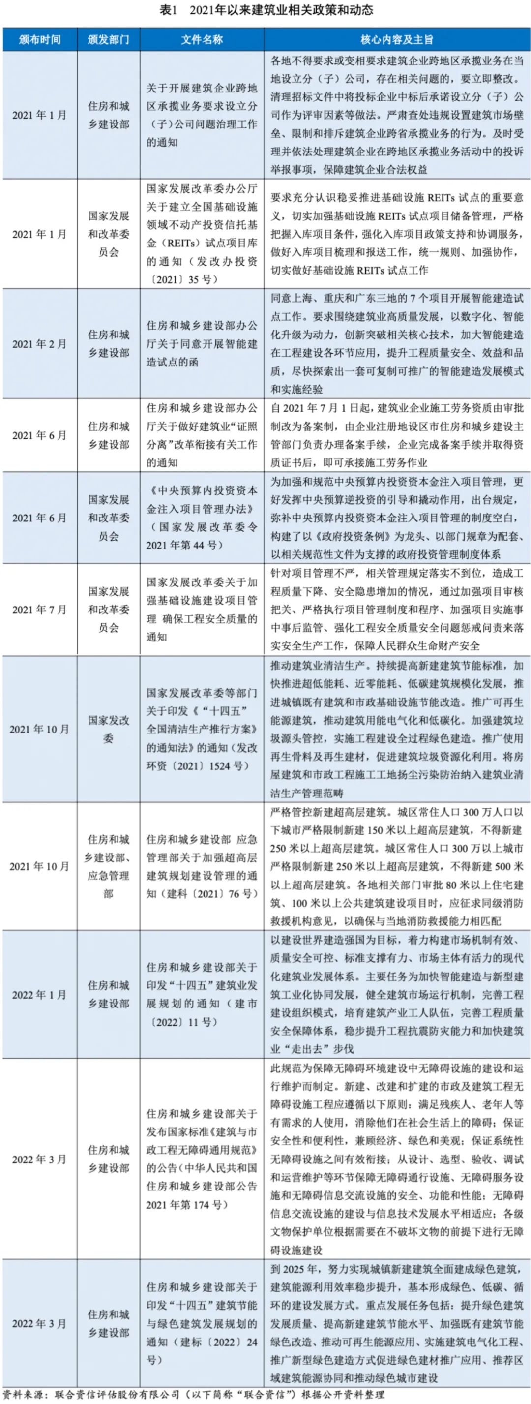 建筑行業“十四五”發展規劃強調行業應從“量”的擴張轉向“質”的提升。2021年以來,建筑行業相關政策仍以規范行業管理和促進行業轉型升級為主導。隨著各地綠色建筑發展速度的提升,有望持續推動裝配式建筑、光伏建筑一體化等的發展。