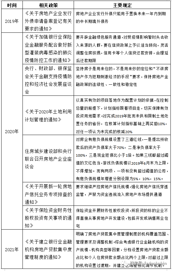 房地產行業投融資政策大致可分為傳統信貸階段、股債結合階段、非標興起階段、定增和公司債盛行階段、境外融資井噴階段和融資政策全面收緊等六大階段。