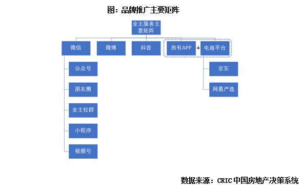 對于地產企業而言,建立成體系的媒體矩陣也是必須的,一方面作為對外輸出品牌的窗口,另一方面可以配合推動線上售房,享受互聯網紅利。
