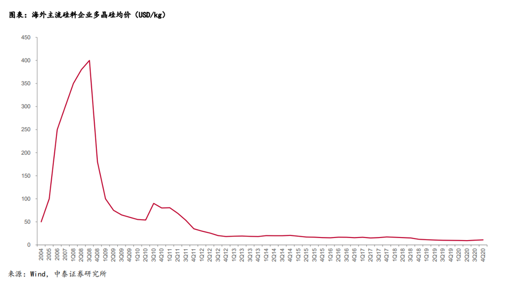 其實(shí),這個(gè)未來發(fā)生的劇情,曾經(jīng)在2008年上演過:硅料產(chǎn)能錯(cuò)配,導(dǎo)致硅料稀缺,歷史最高價(jià)格曾突破400美元/kg。