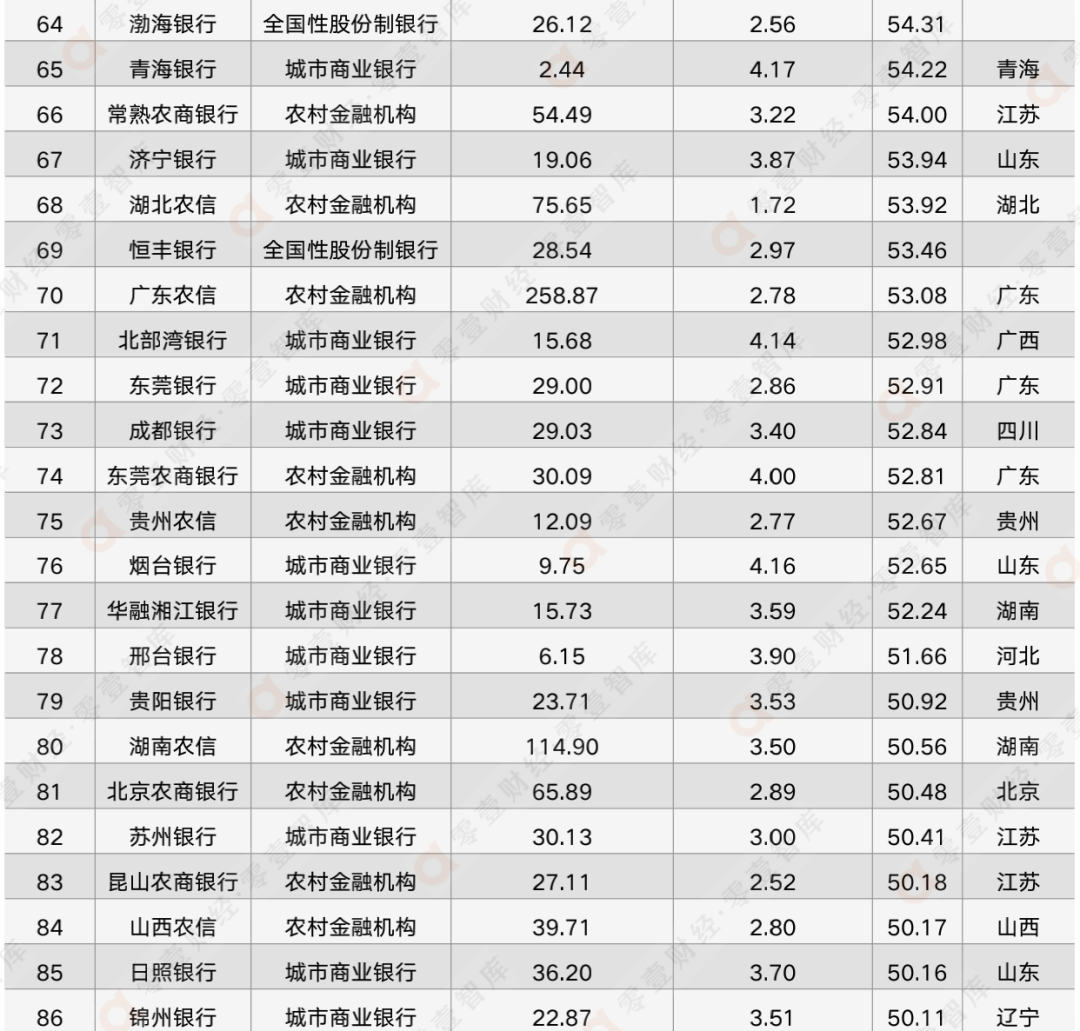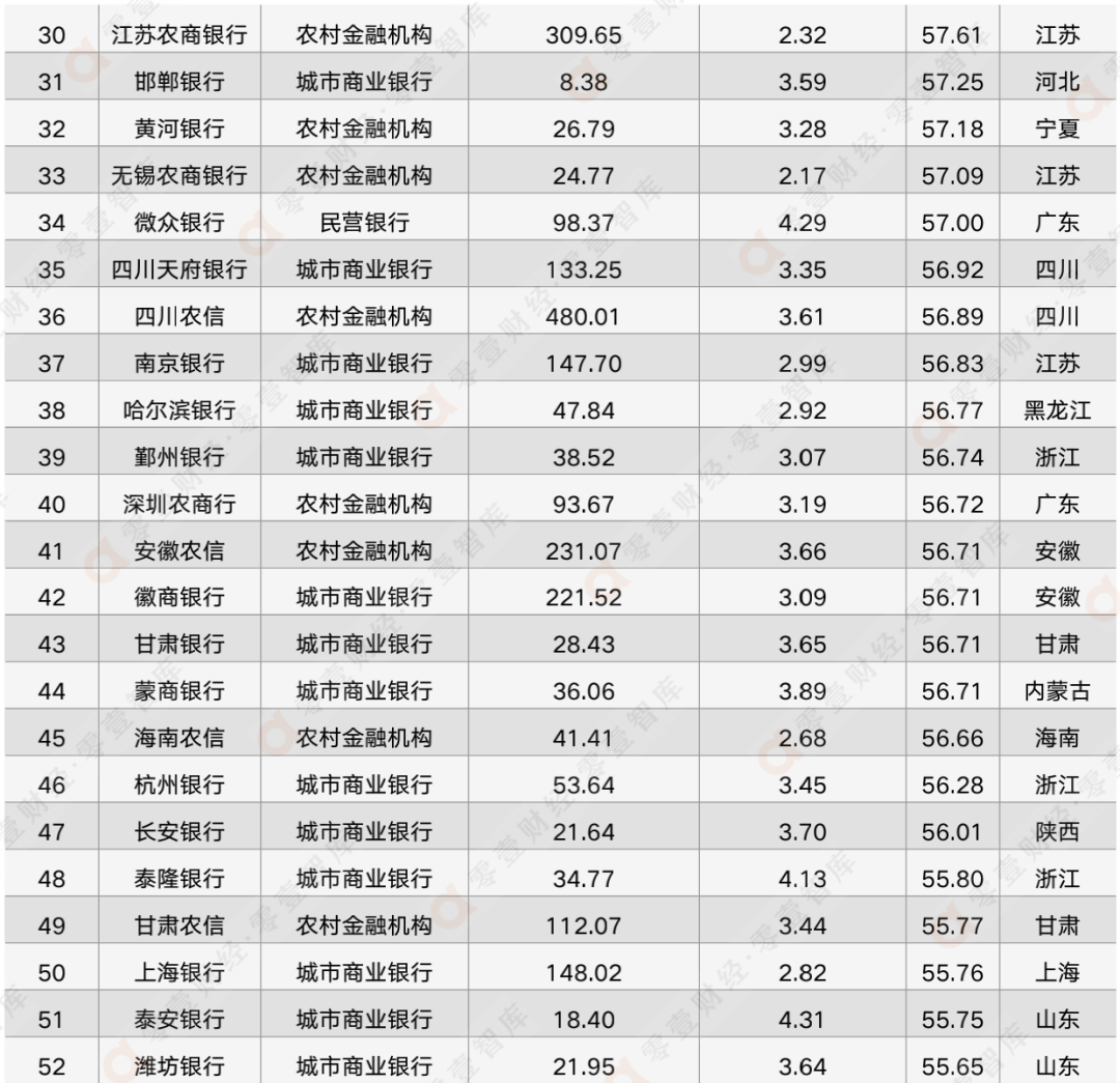 (二)聚焦中小銀行:陜西信合、北京銀行等5家成為TOP 30佼佼者