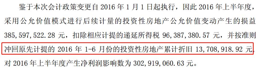 根據上市公司披露的公告,2016年1-6月,公司沖回原先計提的份的投資性房地產累計折舊約1370.89萬元。以下為截圖: