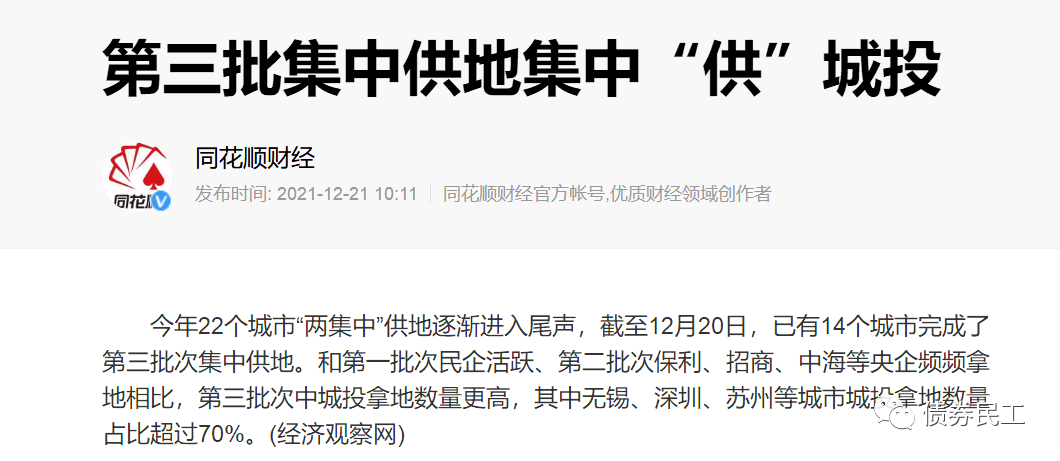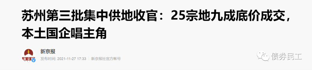 2021年11月24日至26日的蘇州市第三批集中供地中,蘇州市相城城市建設投資(集團)有限公司、蘇州蘇高新集團有限公司、蘇州市吳江濱湖投資集團有限公司等城投公司的均摘得一定的土地使用權。
