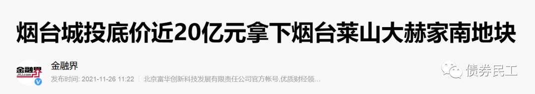 2021年11月26日,煙臺藍天投資開發集團有限公司的子公司煙臺市城市建設投資有限責任公司以19.67億元的價格摘得煙臺萊山大赫家南地塊總出讓面積為300畝的土地,土地性質為住宅用地。