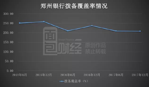 翻查財報:鄭州銀行的撥備覆蓋率從2016年12月的237.83%下降至2017年12月的207.75%。雖然這一撥備覆蓋率仍然高于監管紅線,是合規的,但是,如果將撥備覆蓋率和逾期貸款、不良貸款三項指標放在一起考量,那么鄭州銀行的利潤含金量是值得推敲的。