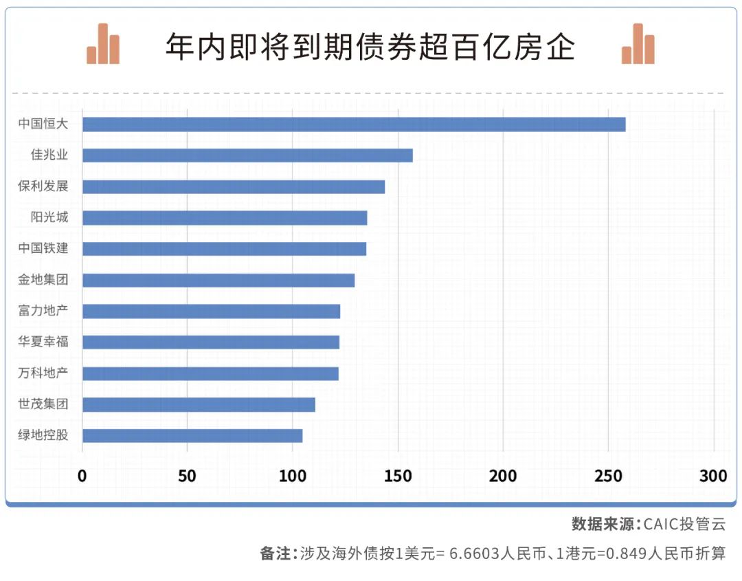 年內,有12家房企債券到期規模超百億,有8家為民營房企。