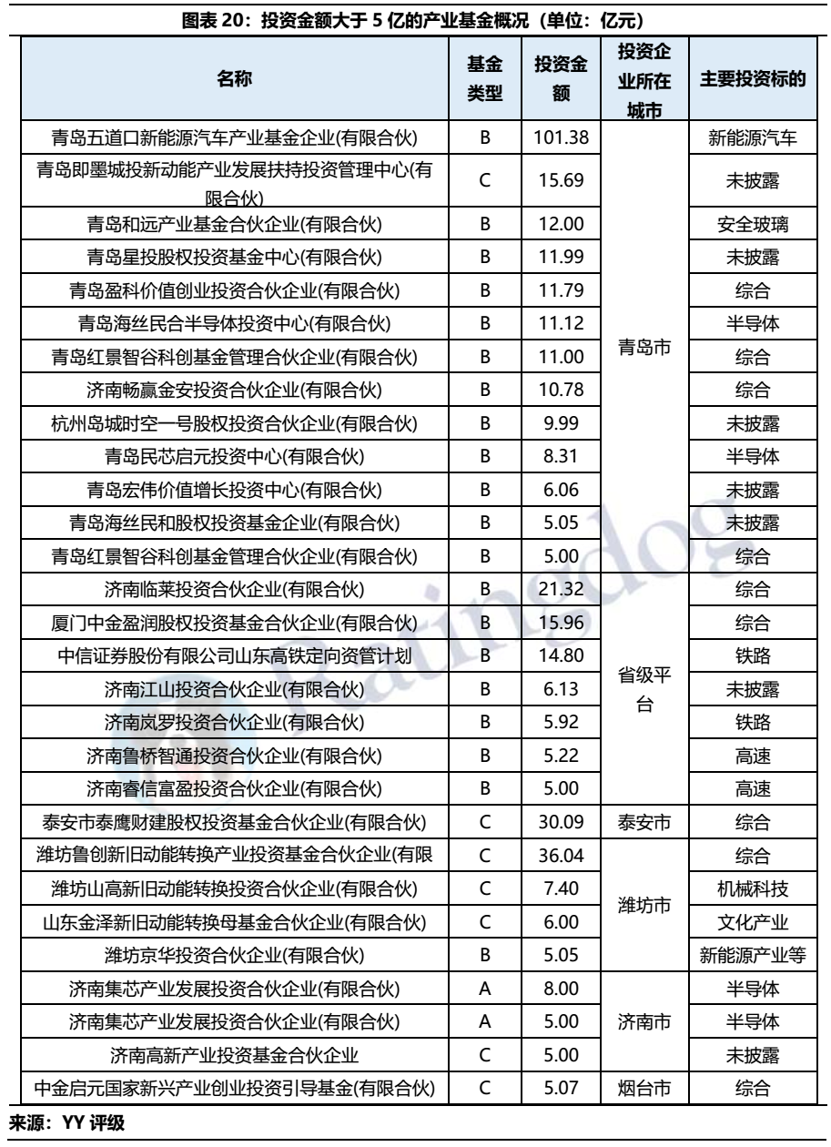 選取青島、濟(jì)南以及濰坊進(jìn)行分析,從基金類型來(lái)看,濟(jì)南市以C類基金為主,政府參與程度較高,市場(chǎng)化程度偏弱。在投資標(biāo)的上,上述三城產(chǎn)業(yè)基金的主要投向?yàn)樾畔⒓夹g(shù)、汽車和醫(yī)藥領(lǐng)域。