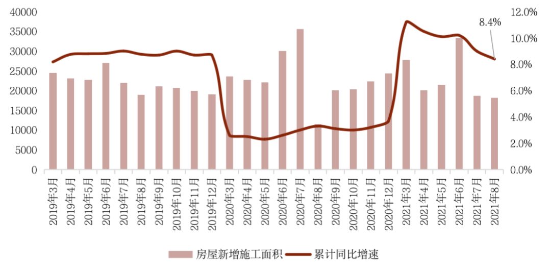 數據顯示,1-8月全國房地產開發投資98060億元,同比增長10.9%,保持基本穩定;新房銷售短期內面臨較大下行壓力,8月單月商品房銷售面積同比下降近16%,東部地區銷售增速出現回落。與此同時,施工和拿地雙雙再度降溫,其中新開工同比降17%至2019年以來月度最低。