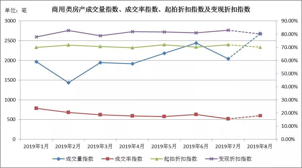 (一) 商用類房產:成交量、成交率雙降,起拍折扣指數、變現折扣指數微升