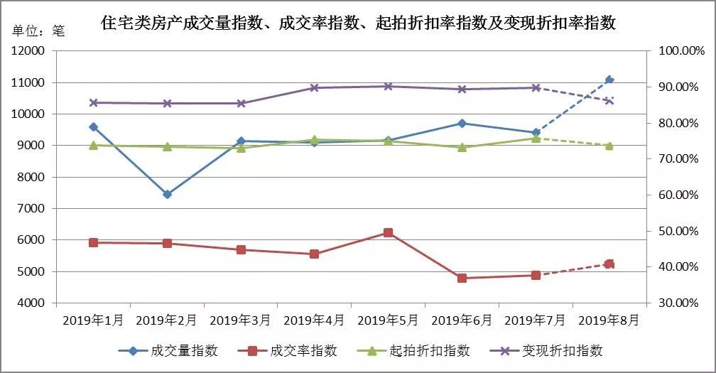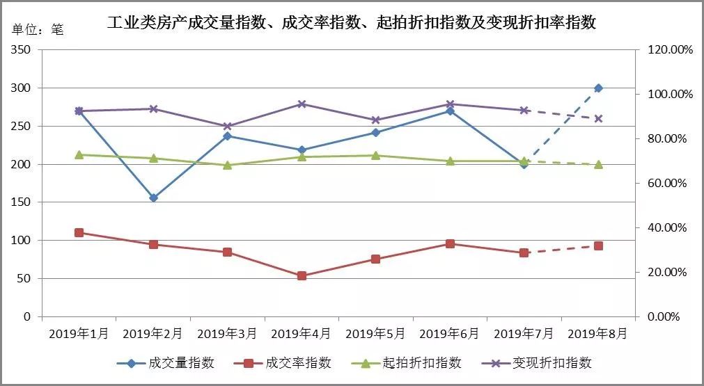 • 八月預測:成交量在279至321筆左右,成交率指數區間[29.19%,34.57%],起拍折扣指數區間[67.74%,69.13%],變現折扣指數區間[87.30%,91.18%]。
