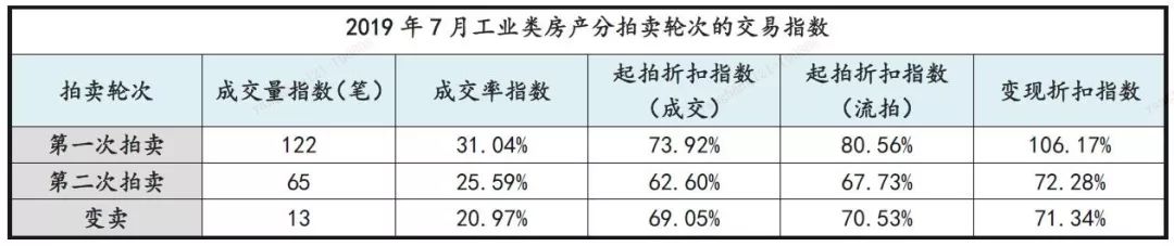(三) 工業類房產:成交量、成交率雙降,起拍折扣指數微跌,變現折扣指數小幅降低