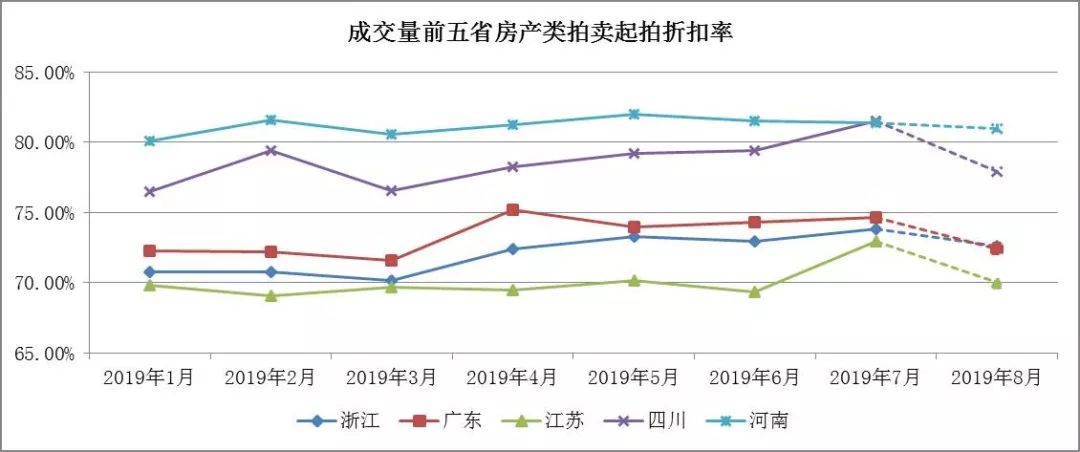 (三) 起拍折扣指數:江蘇、四川、浙江、廣東小幅增長,河南省出現微降趨勢