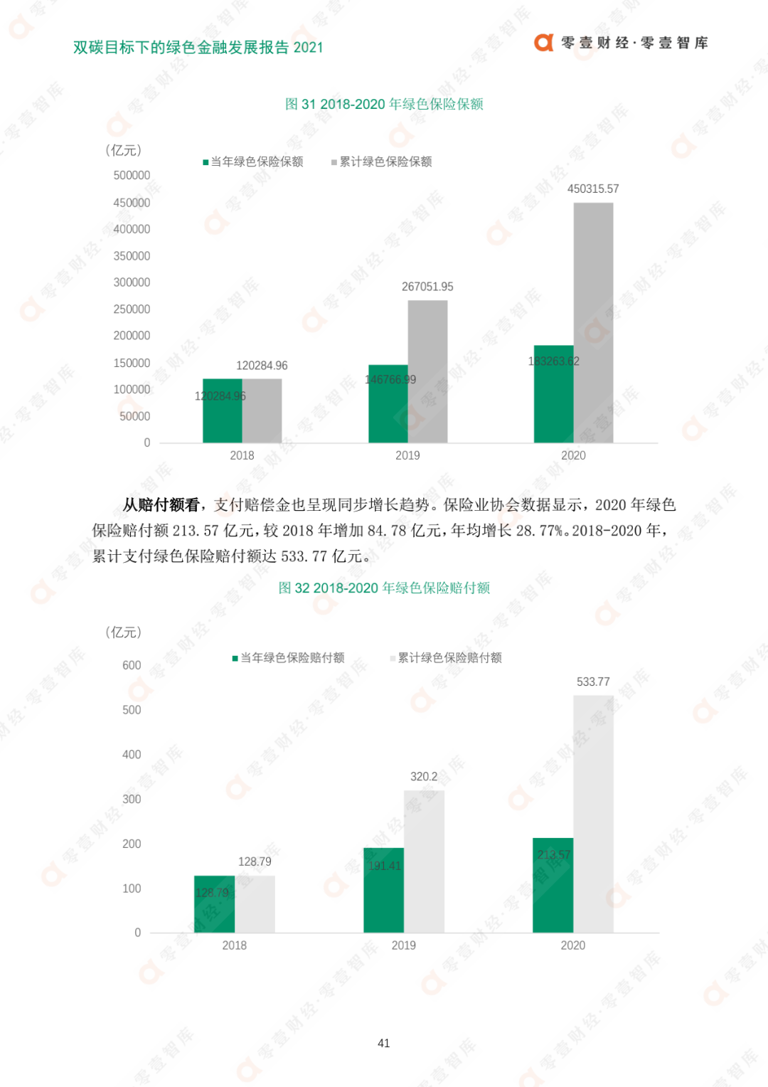 綠色保險規模持續增長。其中,2018-2020年中保額同比增長24.9%,賠付金額年均增長28.77%;綠色保險產品體系涵蓋了綠色保險產品、綠色保險服務及保險資金的綠色應用,綠色保險產品體系初步建立,在綠色金融中發揮越來越重要作用。