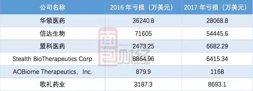 其中,信達(dá)生物是近兩年虧損最多的公司,兩年合計(jì)虧損12.61億美元,虧損最少的公司是AOBiome,2016、2017年合計(jì)虧損2047.9萬(wàn)美元。但根據(jù)已公布的聆訊資料,信達(dá)生物目前的在研藥品也是6家之中最多的共計(jì)17種。