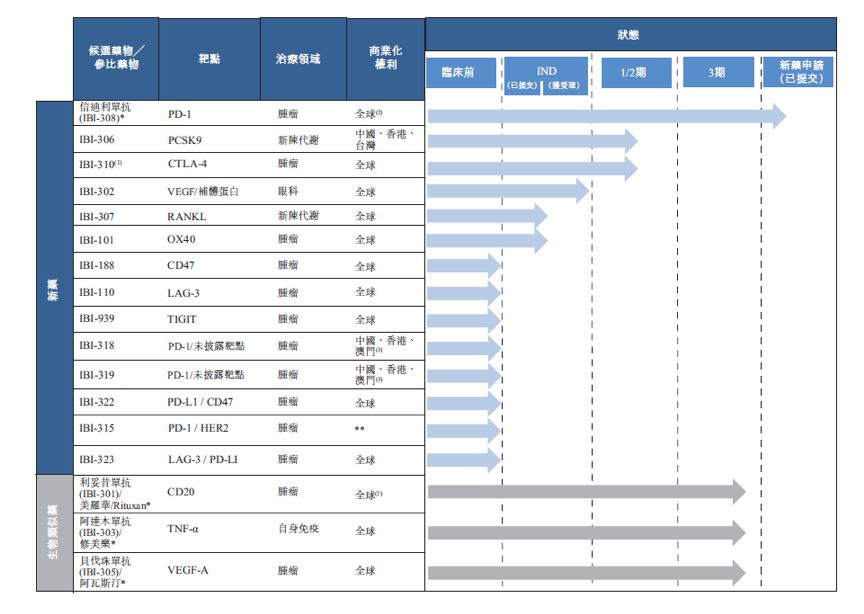 信達(dá)生物是一家抗體藥物研發(fā)公司,目前在研項(xiàng)目共計(jì)四大類17個(gè)藥品,其中14種為新藥,剩余3種為生物仿制藥,藥品種類包含腫瘤、眼科、自身免疫和代謝疾病。