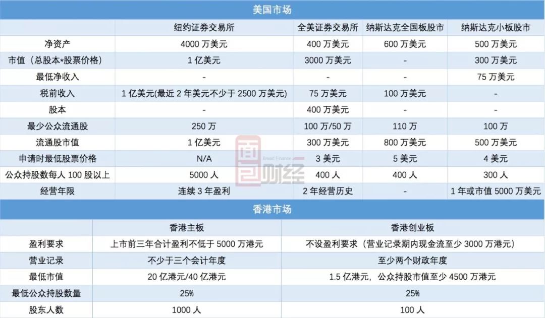 我們先來(lái)簡(jiǎn)單看一下兩個(gè)市場(chǎng)的發(fā)行要求: