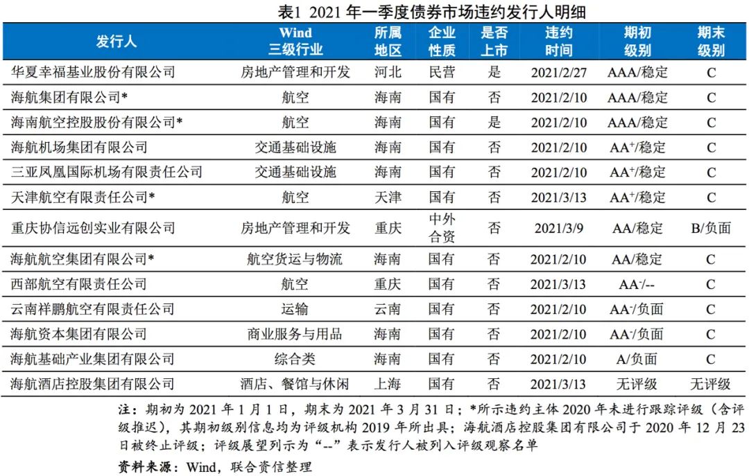 原標(biāo)題: 【債市研究】2021年一季度中國債券市場評級表現(xiàn)和評級質(zhì)量研究報告——海航系企業(yè)破產(chǎn)重整,違約風(fēng)險定向集中釋放