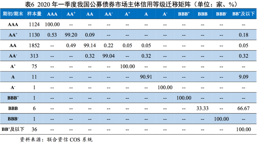 [9]信用等級遷移矩陣的計算方法采用Cohort法,即只對期初和期末均有效的發(fā)行人主體信用等級從期初到期末的變動情況進(jìn)行統(tǒng)計,不包括統(tǒng)計期內(nèi)新發(fā)和到期債券發(fā)行人主體信用等級的變動情況,亦不考慮期間等級多調(diào)和等級回調(diào)的情況。