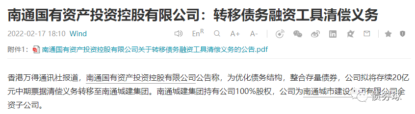 今天看到南通國有資產投資控股有限公司(以下簡稱“南通國資”)關于轉移債務融資工具清償義務的公告,大致情況是計劃由發行人母公司,南通城市建設集團有限公司,承繼發行人發行的相關中票的償付義務。筆者不禁聯想到城投債務的控制問題。