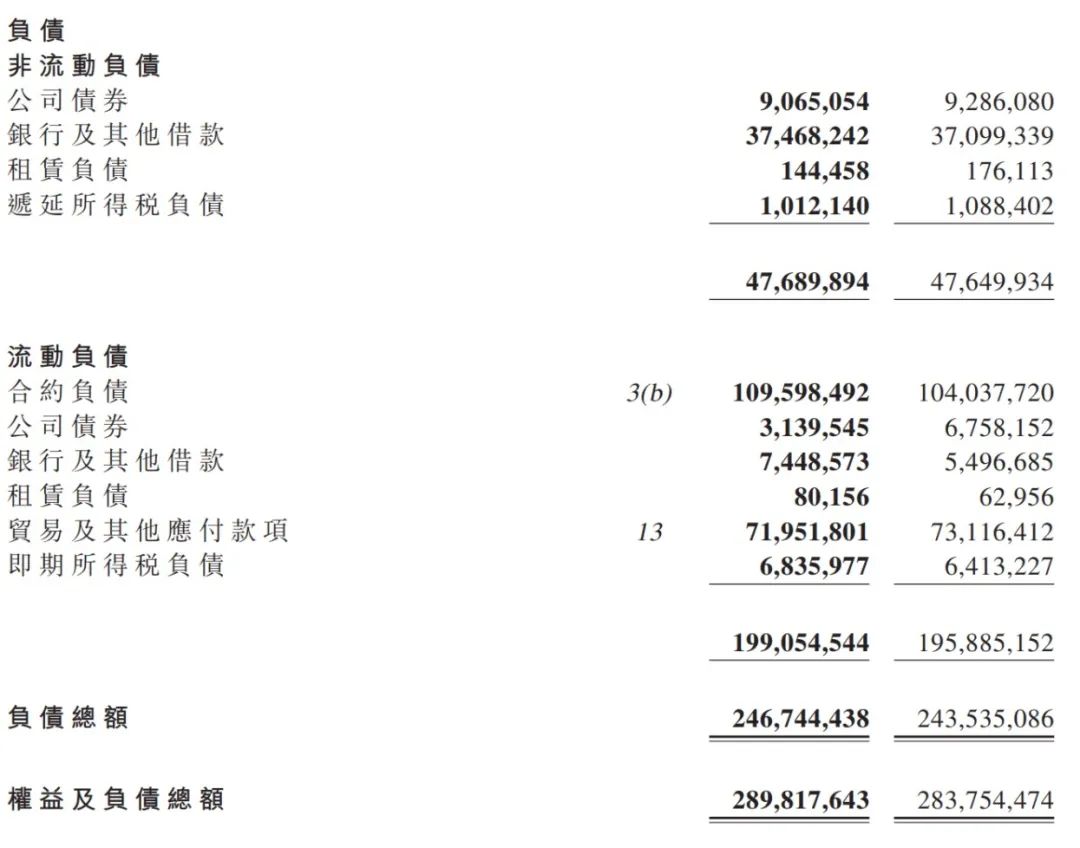 負債總額來看,比2021上半年增加了不到200億元,當然這里面還包括合約負債。貨幣資金也增長了些,2021上半年為233.9億元。