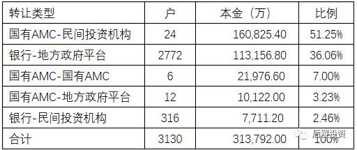 與四大AMC溝通后,了解到信達17年收包本金13億左右,全省一級市場化出包100億左右。數據收集到的230億的出包,其中130億估計是銀行反委托處置。