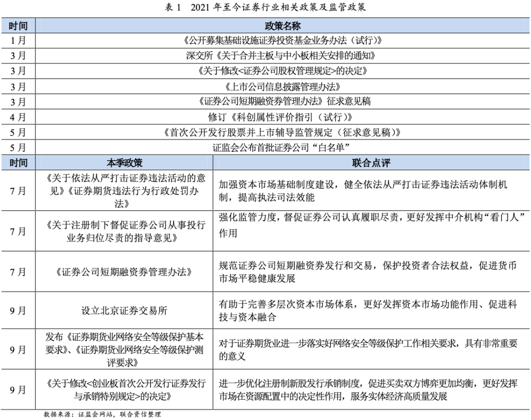 資本市場改革持續(xù)深化,“北交所”成立,打造服務(wù)創(chuàng)新型中小企業(yè)主陣地,多層次資本市場體系進(jìn)一步完善;行業(yè)延續(xù)嚴(yán)監(jiān)管。