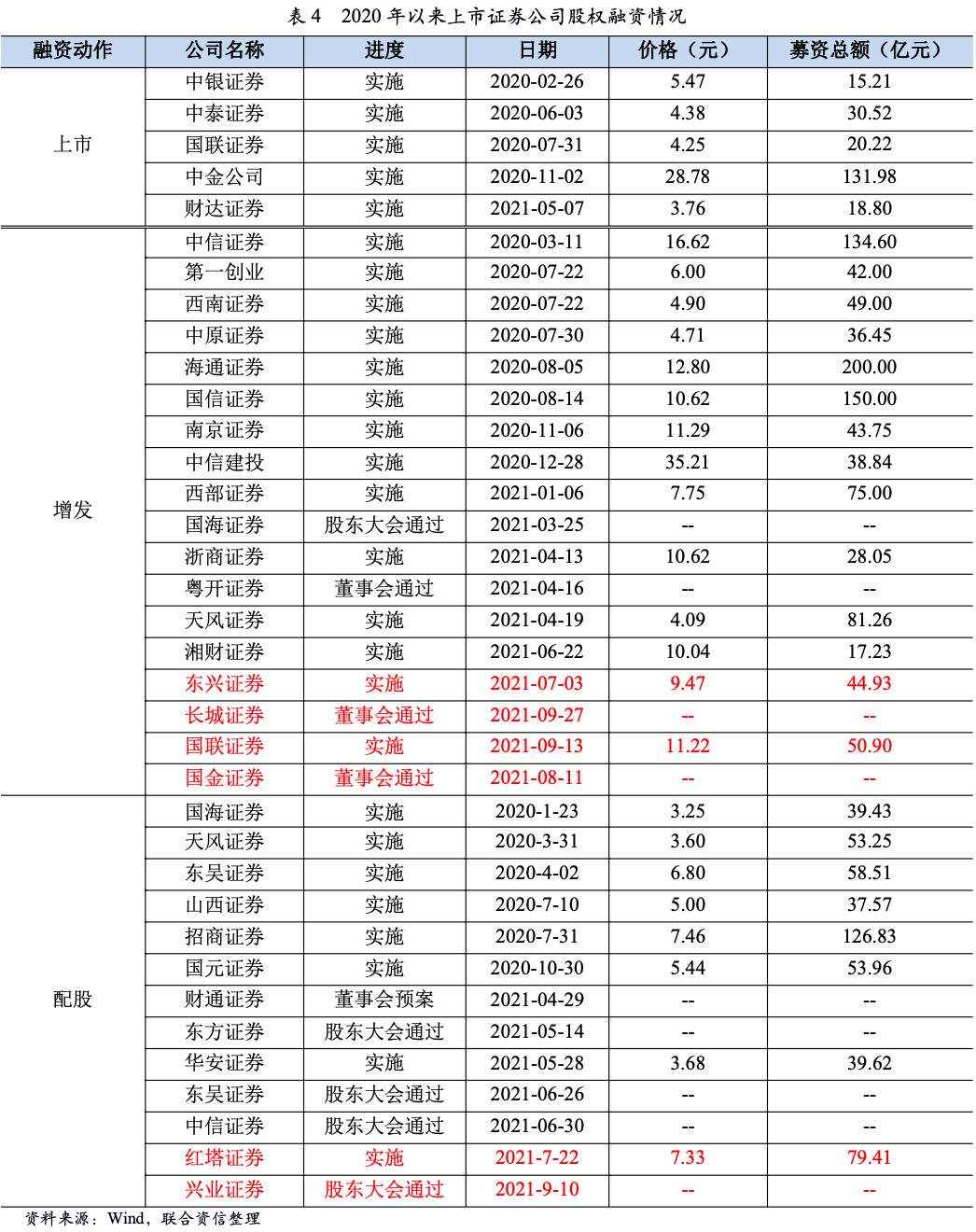 2021年第三季度,紅塔證券配股計(jì)劃進(jìn)入實(shí)施階段,募集資金79.41億元;東興證券和國聯(lián)證券的增發(fā)方案已經(jīng)進(jìn)入實(shí)施階段,募集資金分別為44.93億元和50.90億元,預(yù)計(jì)隨著證券公司各項(xiàng)業(yè)務(wù)發(fā)展,資本補(bǔ)充趨勢將延續(xù)。