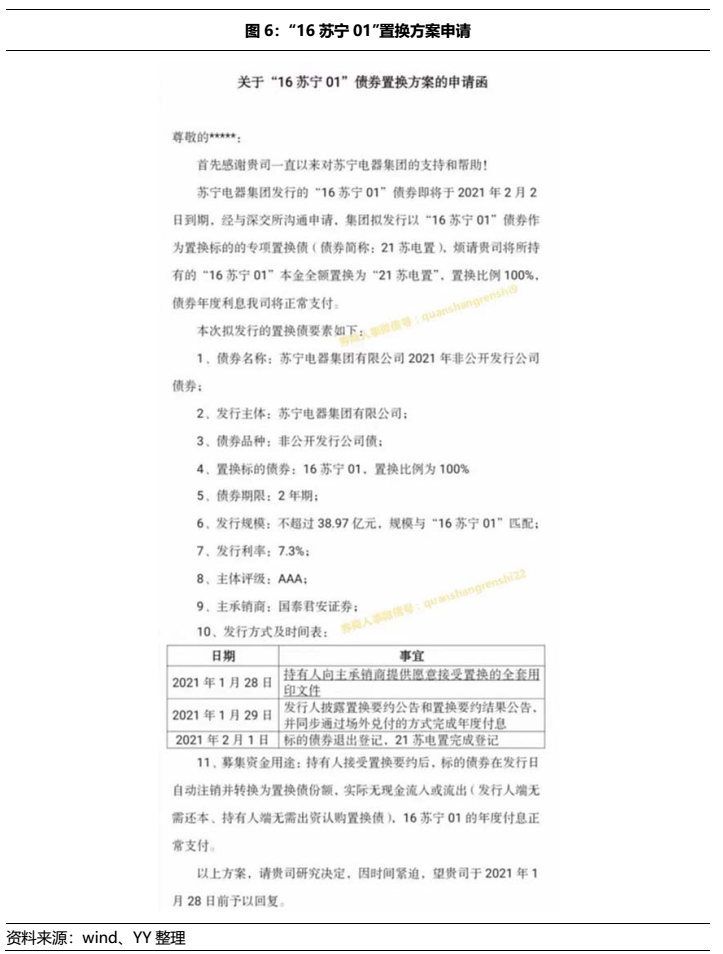 1月26日,電器集團召開千萬以上持有人會議,擬發行以“16蘇寧01"債券作為置換標的的專項置換債“21蘇電置”,置換比例為100%,發行規模與16蘇寧01匹配,不超過38.97億元,發行利率為7.3%,持有人接受置換要約后,標的債券在發行日自動注銷并轉換為置換債份額,實際無現金流入或流出,16 蘇寧01的年度付息正常支付。此番操作,無疑是再融資受阻下的決定,最終置換債“21蘇電01”發行28.54億元。