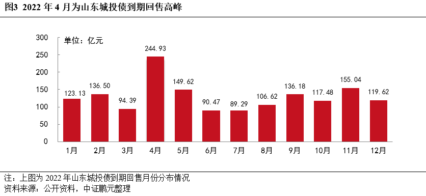 一、2022年山東省城投債到期回售規模維持高位,4月為全年償債高峰,到期回售主體級別以AAA及AA+為主,地市級和區縣級主體占比較高,超短融和私募債規模較大