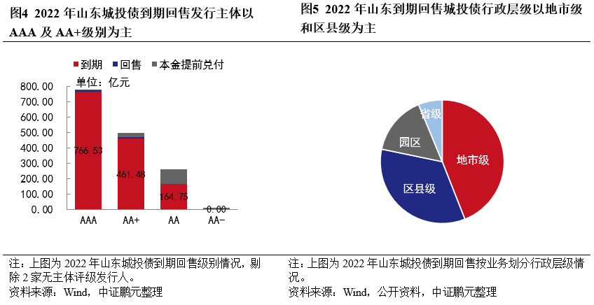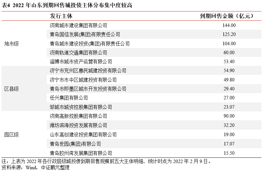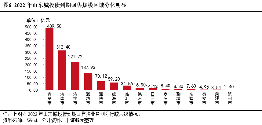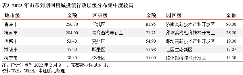 二、山東省2022年到期回售城投債區域和主體分布集中度較高,且各區域間分化較為明顯