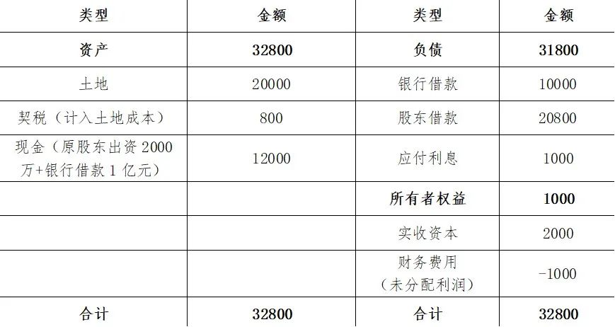 原股東出資2000萬成立項目公司,且原股東額外向項目公司提供2億元借款用于支付新獲取地塊的土地價款、提供800萬元借款用于支付契稅。為維持公司正常經營,向銀行借款1億元,應付未付利息1000萬元。除此之外無其他業務。