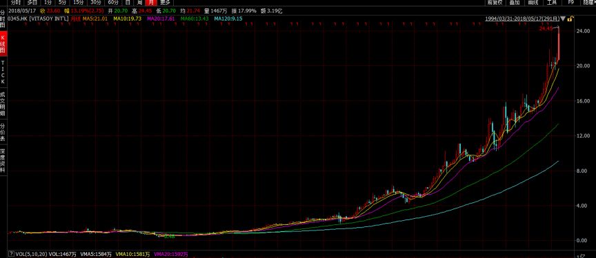 維他奶上市首日總市值只有不到10億港元,目前總市值已超過240億港元,成為港股著名的長牛股和現金奶牛;2006年至今,現金分紅總額折合人民幣約23億元,派息率高達68%。