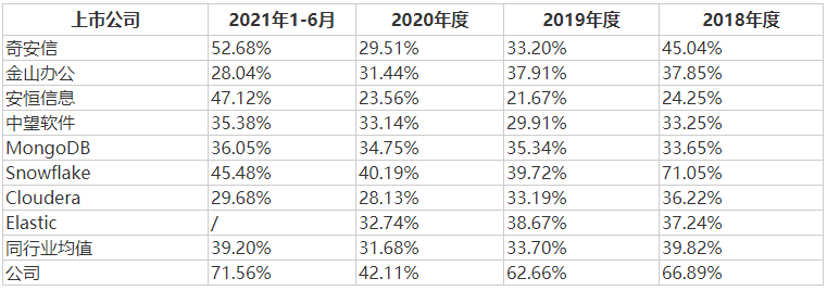 表1 星環科技與同行業可比公司毛利率對比